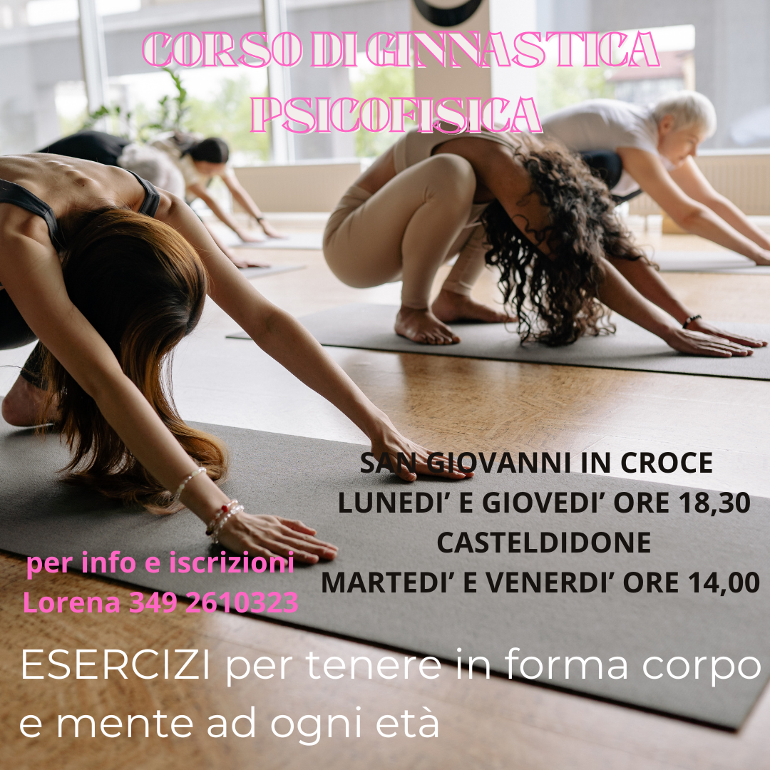 Prendersi cura di sé, significa prendersi cura anche del proprio corpo, della sua elasticità, flessibilità e motricità. Dal 2024 iniziano i corsi di ginnastica psicofisica, adatto a tutte le età per riportare gioia, vigore e rigenerare i propri tessuti e i propri muscoli con esercizi fisici leggeri di ma funzionali.